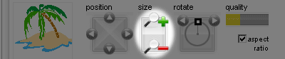 - Alternatively, resize images with fine precision using the Size controls in the Designs & Text panel.